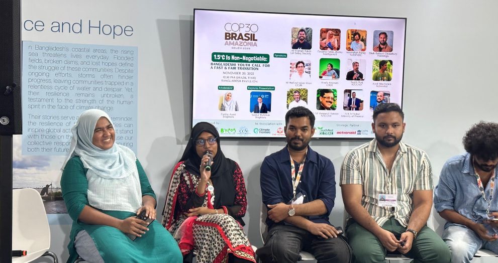At the Bangladesh Pavilion of COP30 in Belém, young climate leaders from Bangladesh gathered for a high-level dialogue titled “1.5°C Is Non-Negotiable: Bangladeshi Youth Call for a Fast & Fair Transition.” Organized by Brighters, Bangladesh Youth Climate Coalition, Climate Citizen Network, and Bangladesh Youth COP, the event amplified the urgent demands of Bangladeshi youth for […]